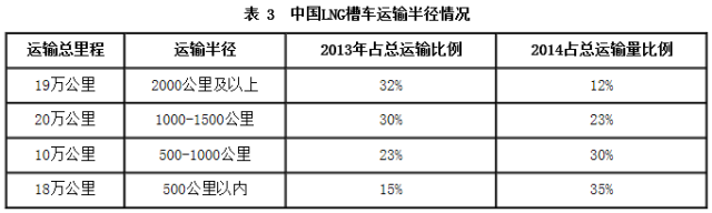 据卓创资讯统计,2015年中国LNG槽车运输半径在500公里以内、500-1000公里的占比出现上升,2000公里以上的占比大幅下滑,1000-1500公里占比略微下滑。整体来看,中国LNG运输半径相较2014年缩小明显。
