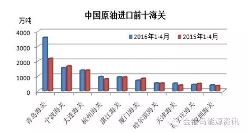 虽然近日中国海关数据显示,5月份中国共进口原油3224万吨,较4月下滑4.3%。但就16年前4个月而言,我国共进口原油1.24亿吨,同比增加12%。其中青岛海关共进口原油3581万吨,占到总进口量的29%,同比更是暴涨近65%。原因自然不言而喻,作为地炼最集中的山东省,原油进口放开后地炼从青岛海关进口原油不断增长,而部分主营炼厂降低开工率抑制了原油进口总量增幅。