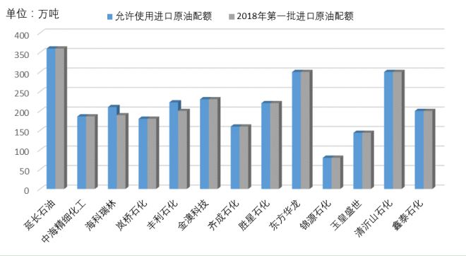 从上图可以看出,上述19家地炼在2017和2018年均获批了首批进口配额,而最为显著的变化是,京博石化和汇丰石化等山东地炼的增幅非常明显,算是弥补了2017年首批配额“明显不足”的缺陷。