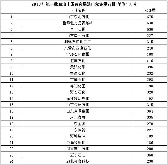 12月28日,业界翘首以盼的2018年首批原油非国营贸易进口配额终于崭露头角,总量高达1.2132亿吨,较2017年首批量大增76%。