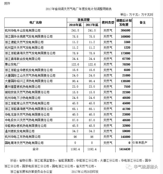 近日,浙江省发改委、能源局发布了关于调整2017年度省统调天然气电厂发电计划的通知。