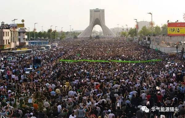 2009年6月,时任总统内贾德在大选中获得连任,但其竞争对手、改革派候选人穆萨维的支持者指责内贾德选举舞弊,引发支持改革派的民众群体上街抗议,人群达到数百万人的规模,被称为“绿色革命”。