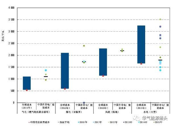 注:全球项目成本基于2015年成本,以2014年等值美元计价。中国成本基于典型项目,数据来自多个公共信息来源和调查。中方在撒哈拉以南非洲项目成本基于2010和2015年间签署的合同,以2014年等值美元计价。
