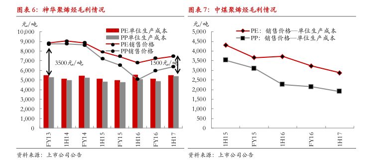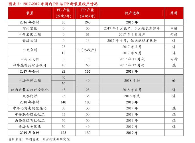 2018年国产量增速约为7%-9%:2018年国内增量货源将主要来自于神华煤制油配套项目、中海油壳牌二期以及延安能化3套装置,预计LLDPE产量增速将大于PP。