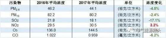 2017年,全国365个城市PM2.5平均浓度为44.1微克/立方米,相较2016年的46.2微克/立方米下降4.5%;