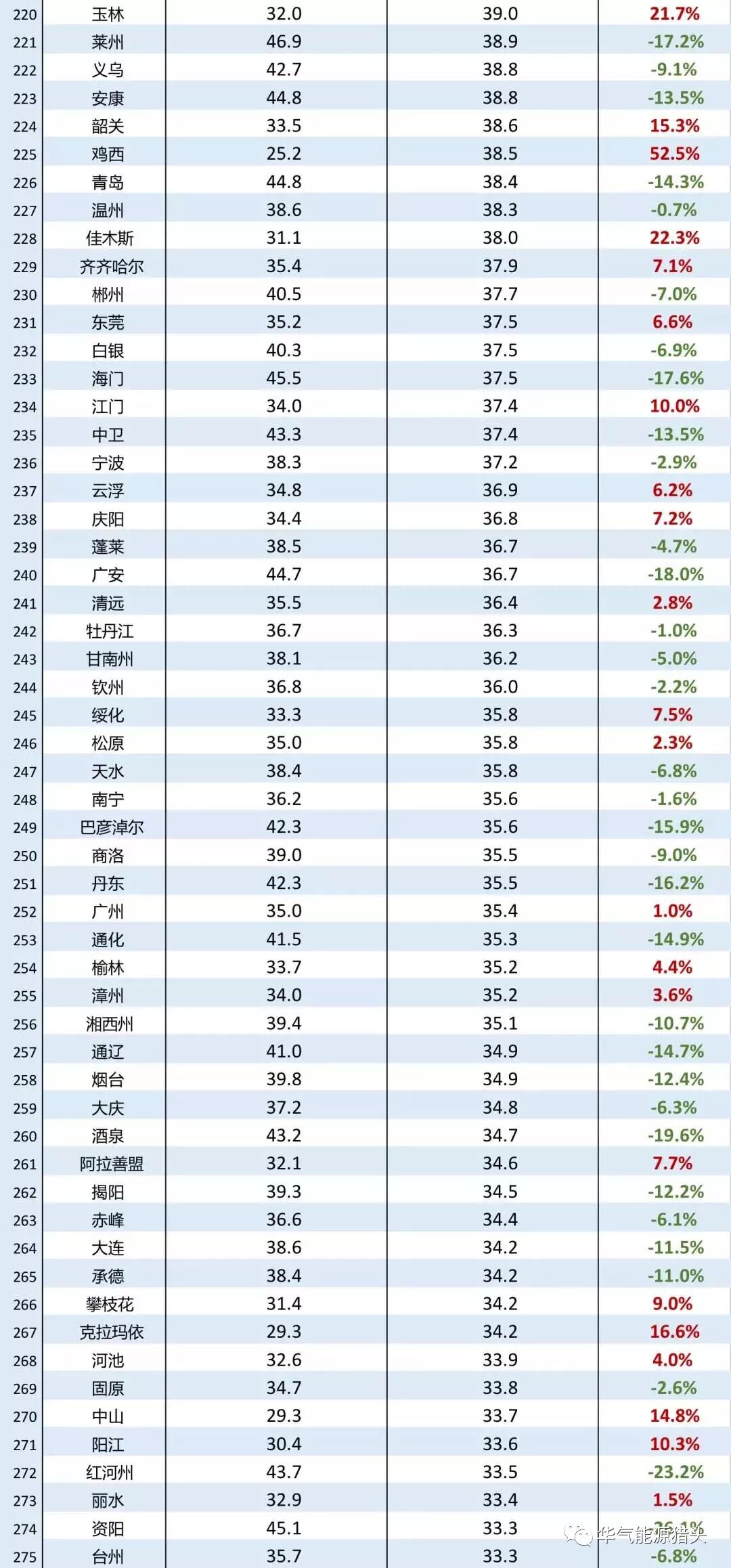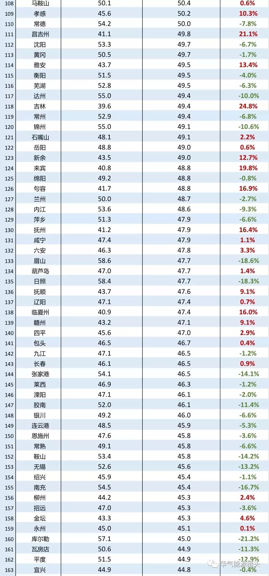 2017年,全国128个城市的PM2.5年均浓度同比不降反升,在反弹最严重的10座城市中,鸡西市以52.5%的同比增幅位于反弹榜的第一名。反弹榜前十名中有四个城市位于黑龙江省,浓度增幅在22.0%到52.5%之间。其余六个城市分别处于安徽省(池州市、淮南市)、新疆维吾尔族自治区(伊犁哈萨克自治州、阿勒泰地区)、吉林省(吉林市)和广西省(玉林市)。