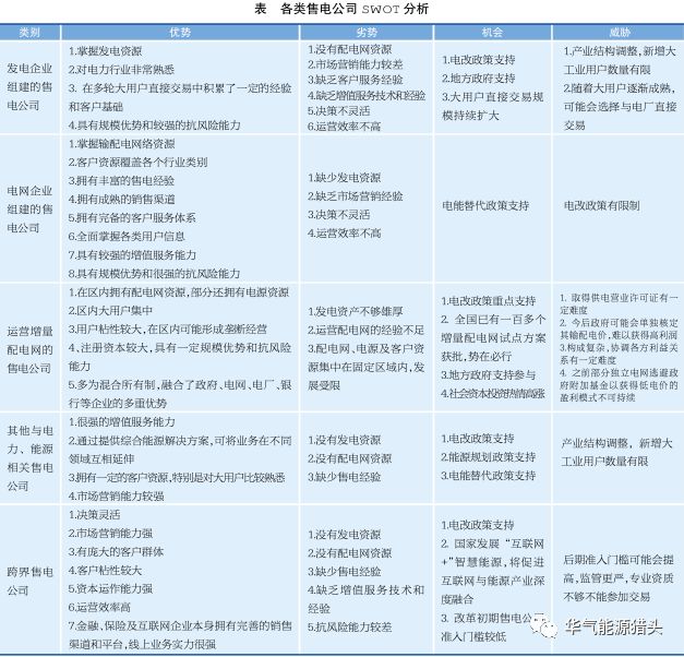 售电主体 SWOT 分析
