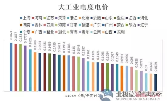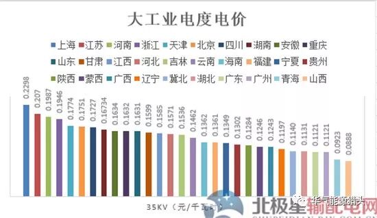 2..35kv电压等级下,山西最低为0.0888元/千瓦时,上海最高为0.2298元/千瓦时。