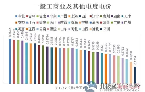2.1-10kv电压等级下,深圳最低为0.1794元/千瓦时,湖北最高为0.4662元/千瓦时。