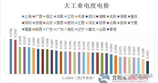1.1-10kv电压等级下,青海最低为0.1023元/千瓦时,上海最高为0.2782元/千瓦时。