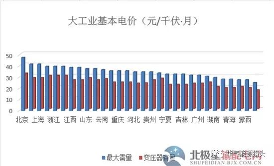 大工业基本电价分最大需量和变压器容量两种计费方式,从基本电价的情况来看,天津最低,北京最高。
