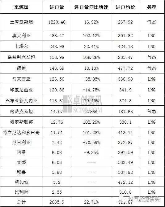 广汇集团进口天然气14万吨,为从哈萨克斯坦进口的管道天然气,作为吉木乃LNG工厂的原料气。九丰集团进口天然气27万吨,同比增长37%。