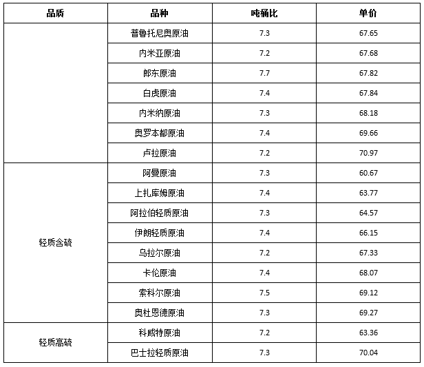 中质原油中,伊朗、伊拉克、沙特和苏丹等地的中质原油性价比表现突出,进口均价在61-63美元/桶;而阿根廷、安哥拉和美国的中质原油品种性价比偏低,进口均价接近70美元/桶。