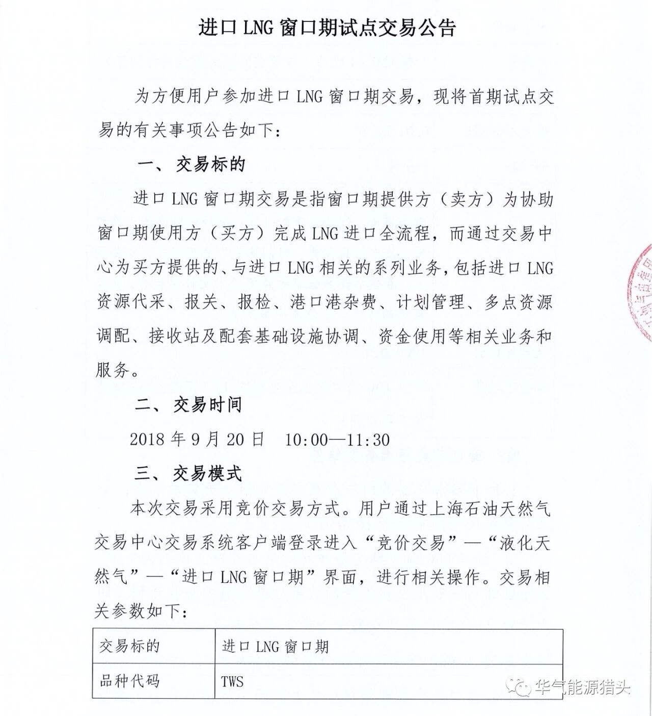 据了解,进口LNG窗口期产品是指提供方(卖方)为协助接收方(买方)完成LNG进口全流程,而通过交易中心提供的与进口LNG相关的系列业务,包括进口资源代采(协采)、报关、报检、港口协调、计划管理、多点资源调配、接收站及配套基础设施协调(不包括使用费、加工费)、资金使用等相关业务和服务。