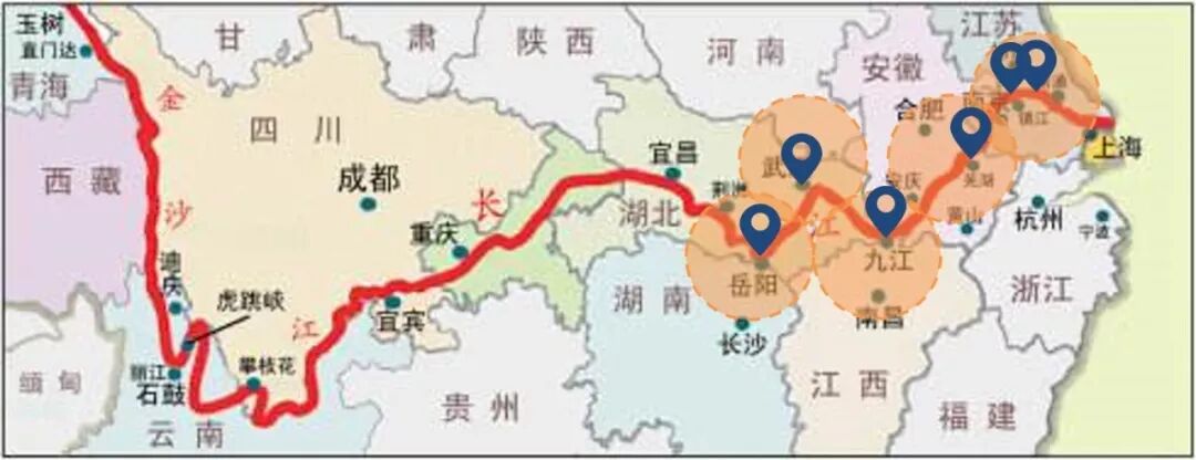 重点研究接近长江中下游湖北(宜昌三峡大坝以下)、湖南、江西、安徽、江苏等5各省份的沿江LNG码头布局方案。
