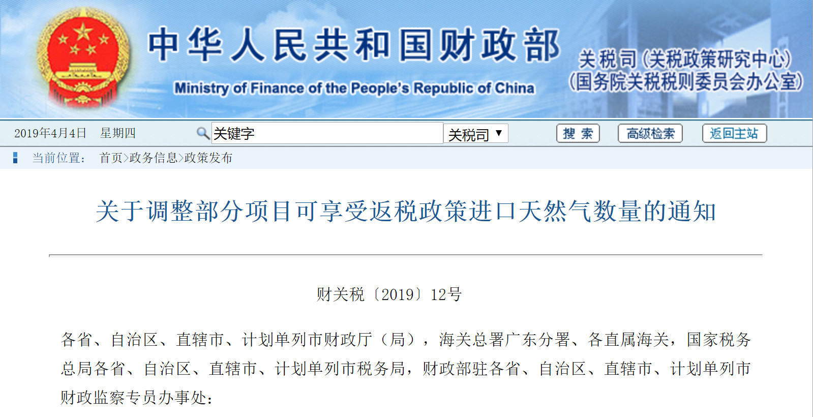 一、自2019年1月1日起,将浙江液化天然气项目可享受政策的进口规模调整为700万吨/年,将唐山液化天然气项目、天津液化天然气项目、广西液化天然气项目、天津浮式液化天然气项目、上海液化天然气项目可享受政策的进口规模调整为600万吨/年。