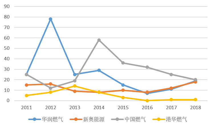 而同时,各大集团新增城燃项目也处于低位水平,国内市县级城燃项目确实瓜分殆尽了。
