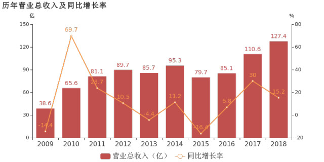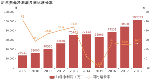 公司2018年期间费用率为11.9%,同去年相比变化不大。期间费用合计达15.1亿,同比上升12.8%。其中销售费用为9.6亿,同比上升9.7%;管理费用为1.7亿,同比上升4.6%;财务费用为1.6亿,同比上升53.4%;研发费用为2.2亿,同比上升12.1%。
