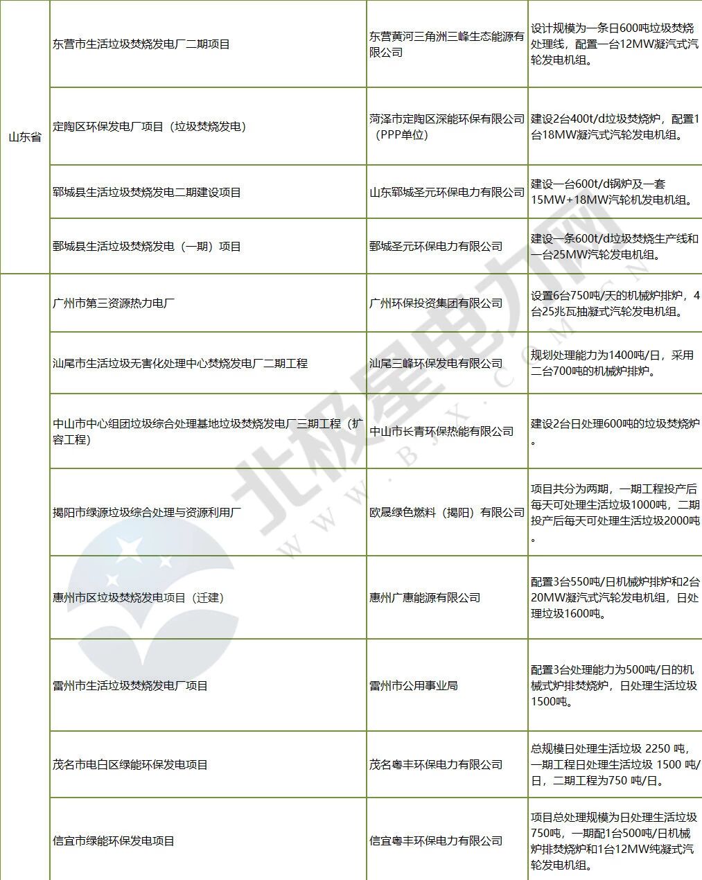 文:北极星电力网 今年,多个省市陆续发布了2019年省级重点项目名单,其中涉及40个垃圾焚烧发电项目,详情如下: