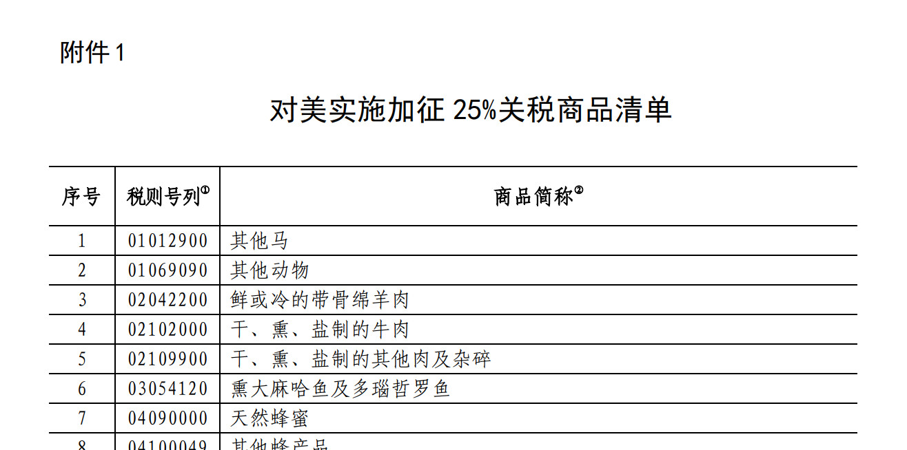 附件:1.对美实施加征25%关税商品清单