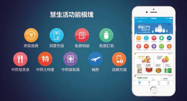 在居民用户、公福用户及工商用户中大力拓展自有品牌「中燃宝」壁挂炉、厨房燃气具、燃气综合保险、波纹管、报警器等相关增值服务业务。同时还配套搭建了在线与线下融合的销售渠道,透过中燃慧生活电子商务有限公司推出中燃慧生活APP。