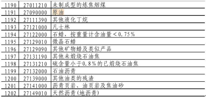 1.原油首次纳入中国进口商品加征关税清单