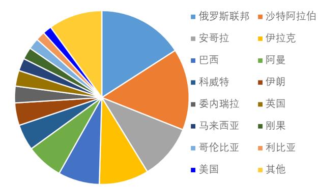 图 4 2019年4-6月中国主要原油进口国比例