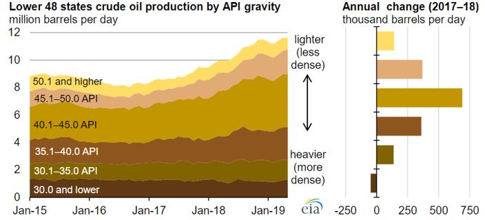图 5美国原油产量按API划分