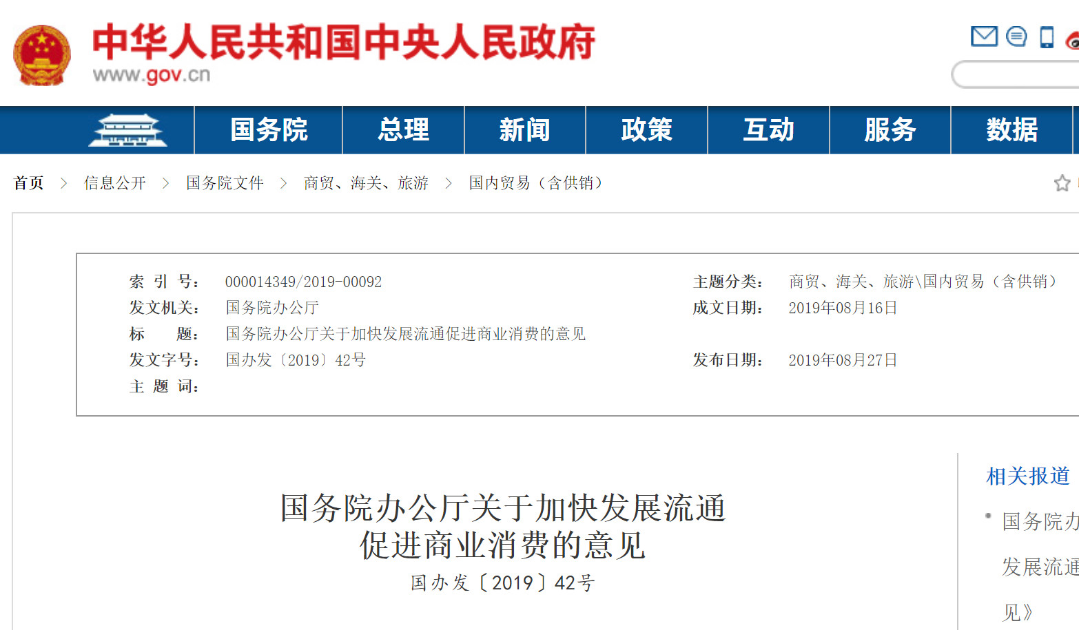 国务院办公厅关于加快发展流通促进商业消费的意见