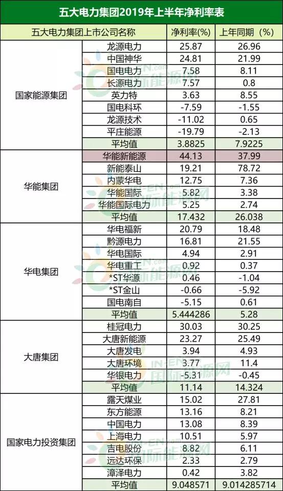 华能集团净利率最好