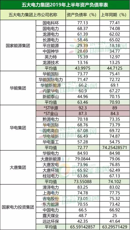 其中平均负债率最高的大唐集团高达73.55%。但是从单个上市公司看,负债率最高的两家企业却并没有出现在大唐集团。而是华电集团的*ST华源(1.740, 0.00, 0.00%)和*ST金山(1.750, 0.02, 1.16%),分别以负债率92.3%和87.3%成为所有五大集团旗下上市公司中负债最高的企业。