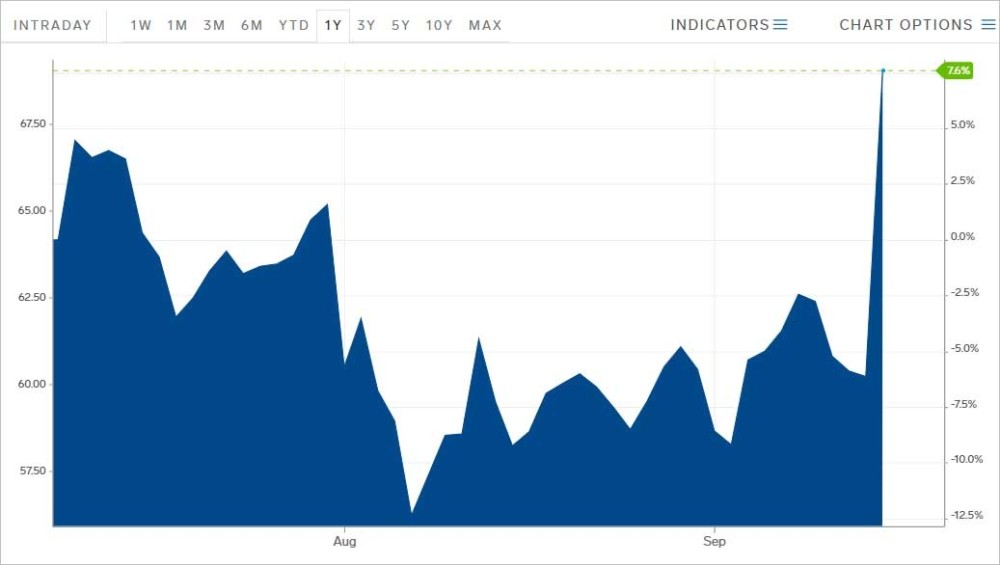 受上述事件影响,16日布伦特原油开盘暴涨12%。