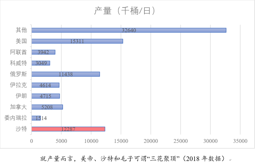 但就这么一个土地贫瘠的沙漠之国,却因为波斯湾附近在地质年代的变化成了名副其实的“石油帝国”。沙特的石油资源极其丰富,探明储量2977亿桶,居世界第二,占全球总量17.2%;产量1229万桶/日左右,占到全球日产量的13%左右,位居全球第二。