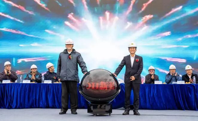启动仪式上,台塑工业(宁波)有限公司总经理陈光明和公司董事长、总经理胡二甫共同按下开工典礼启动球,彩烟、鞭炮、桩机、挖机同时点燃和启动,把整个会场推向了高潮。