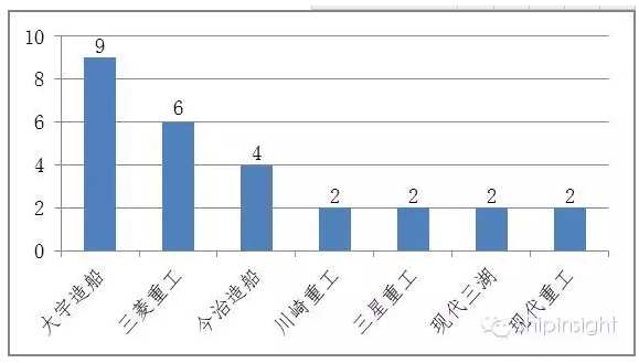 据统计,2015全年成交LNG新船订单35艘,较2014年的69艘下降50%,占全球手持LNG订单的33%。成交的35艘订单中,有27艘为17万方级大型LNG船,主要集中在如下全球7家船厂。