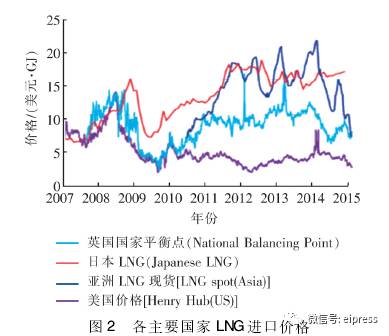 另一方面,就已勘探的天然气量而言,西部和北部的天然气储量在未来几年仍比较充足,而东部的储量会随着近期的开发迅速下降,从长远的角度看,当前的开发力度略显过度。各主要国家LNG 进口价格见图2( 日本LNG价格按从澳大利亚的进口价确定)。