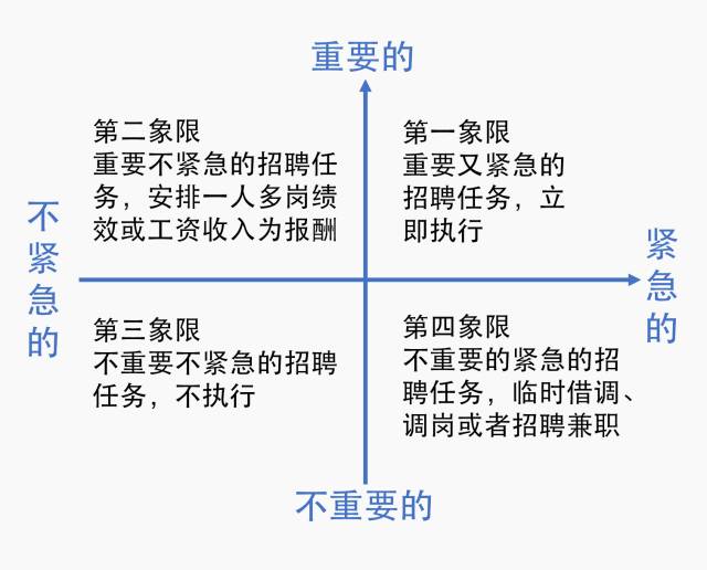 面谈问询法在开始之前要准备好面谈记录表格,表格内容包含但不限于:招聘需求职位名称、需求数量、招聘原因、汇报管理关系、薪酬待遇参考标准、职位发展通道建议等等。根据面谈询问得到的资料结合该项业务目前的现状,再套至四象限里,分析是否需要招聘还是调岗或者一岗多责解决。