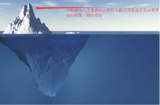 有人声称这种根据人口统计学指标以及其他硬指标进行人岗匹配的大数据产品,还具有测评功能。不可否认其价值,但只是对人才素质冰山山尖上的几颗冰疙瘩进行了尝试。