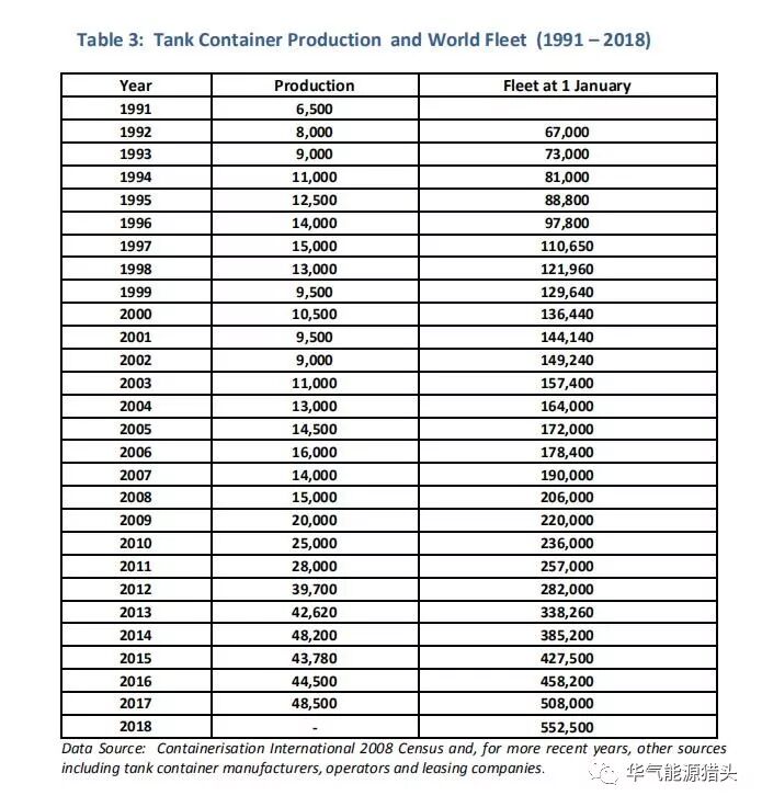 报告统计来源2017.1-2018.1,相对2017年,全球罐箱新箱数量增加48500个,总预计运营数量达到552000个(报告未详细提及各类型罐箱数量的规模情况),报告指出大部分的增长来源于亚洲区域性的近洋、远洋罐箱多式联运和替代其他包装的机会扩大。