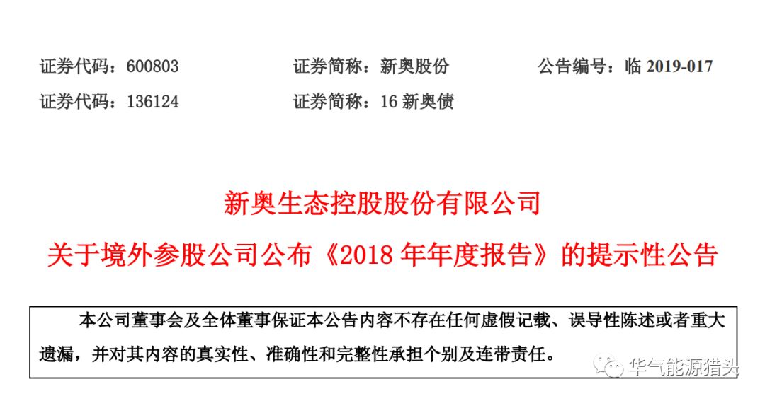 新奥生态控股股份有限公司(以下简称“公司”)全资子公司新能(香港) 能源投资有限公司通过 United Faith Ventures Limited 持有澳大利亚上市公司 Santos Limited (以下简称“Santos”)209,734,518 股股份,占其已发行流通股总股数的 10.07%。Santos 于 2019 年 2 月 21 日公布了《2018 年年度报告》,公司现 就其主要内容做如下提示性公告: