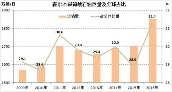 EIA数据统计,霍尔木兹海峡承担着全球约30%石油的运输,每天通过该海峡运出的原油接近1900万桶(见下图),此外每天还有200多万桶其他的原油产品需要通过该航道运输,包括燃油、液化天然气等等。对于中东及海湾地区来说,霍尔木兹海峡的意义则更为重大,有至少90%以上的中东原油都需要通过这条航道向外输出,其中有85%运往亚洲地区,包括中、日、韩、印等国。根据EIA预计,到了2020年,每天由霍尔木兹海峡经过的原油将达到3000-4000万桶/日。