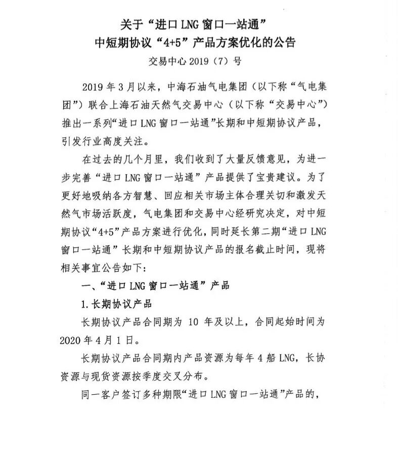 原标题:关于"进口LNG窗口一站通"中短期协议"4+5"产品方案优化的公告
