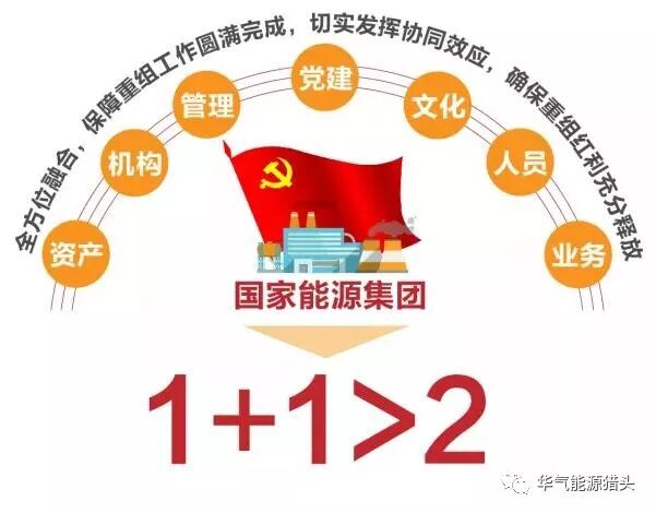 国家能源集团将加快推进资产、业务、机构、人员、管理、文化和党建全方位融合,保障重组工作圆满完成,切实发挥协同效应,确保重组红利充分释放,实现1+1>2的重组效果。集团公司党组将始终坚持党管干部和党管人才原则,树立正确的选人用人导向,使新集团充满责任担当,充满时代气息,充满蓬勃生机,充满无限希望。