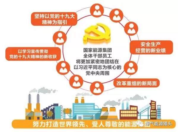 国家能源集团全体干部员工将更加紧密地团结在以习近平同志为核心的党中央周围,坚持以党的十九大精神为指引,以学习宣传贯彻党的十九大精神的新收获,安全生产经营的新业绩,改革重组的新局面,努力打造世界领先、受人尊敬的能源集团。
