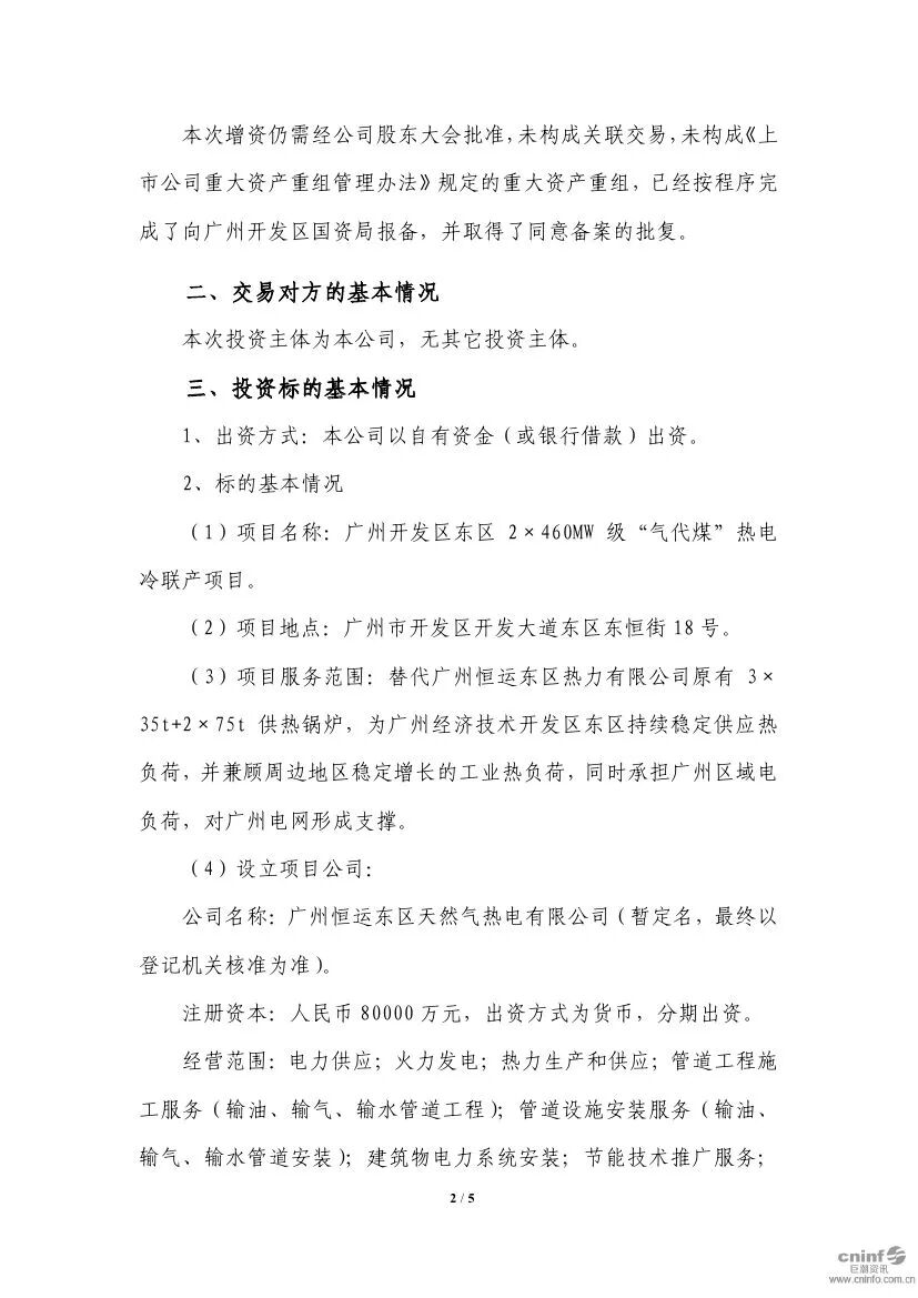 原标题:总投资31.8亿元!广州恒运企业集团拟投资 2×460MW 级热电冷联产项目 来源:北极星电力网&同花顺金融服务网