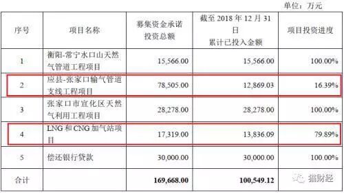 截止2018年末,金鸿控股上市时17.4亿的募资项目还有“应县-张家口输气管道支线工程项目”和“LNG和CNG加气站项目”未完工,2019年5月末,金鸿控股公告终止这两项募投项目,并将剩余资金6.91亿永久补充流动资金,此次拟终止投资项目剩余未使用募集资金占募集资金总额的40.74%。