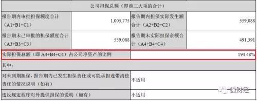 猫妹注意到,除了自身债台高垒,金鸿控股还有大量对子公司的担保,2018年末公司实际担保余额合计49.14亿,占净资产比例194.48%,其中13.91亿为对本次集中出售的17家子公司的担保,占总担保额28.31%。