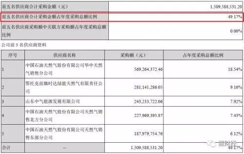 另外,即使没有资金周转问题,金鸿控股本身问题也足够多了,对供应商的过度依赖导致公司极易受其掣肘,据2018年年报显示,公司前五名供应商合计采购金额占年度采购总额比例为49.17%,其中中国石油天然气股份有限公司就占据18.54%。