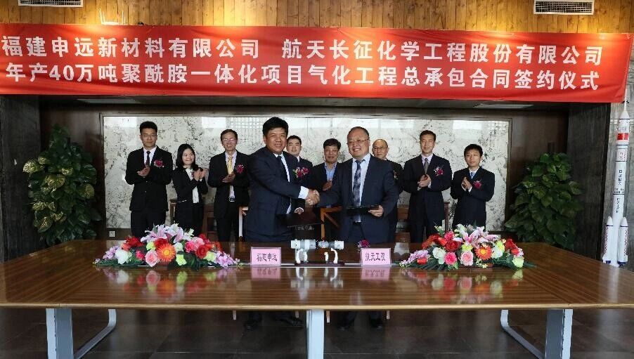 7月23日,申远新材料二期年产40万吨聚酰胺一体化项目气化工程总承包合同签约仪式在京举行。航天一院副院长、航天工程公司董事长唐国宏,航天工程公司副总经理朱玉营,申远新材料总经理潘德标、副总经理谷俊以及项目各成员代表参加签约仪式。项目采用2台航天炉,合同金额6.5亿元。