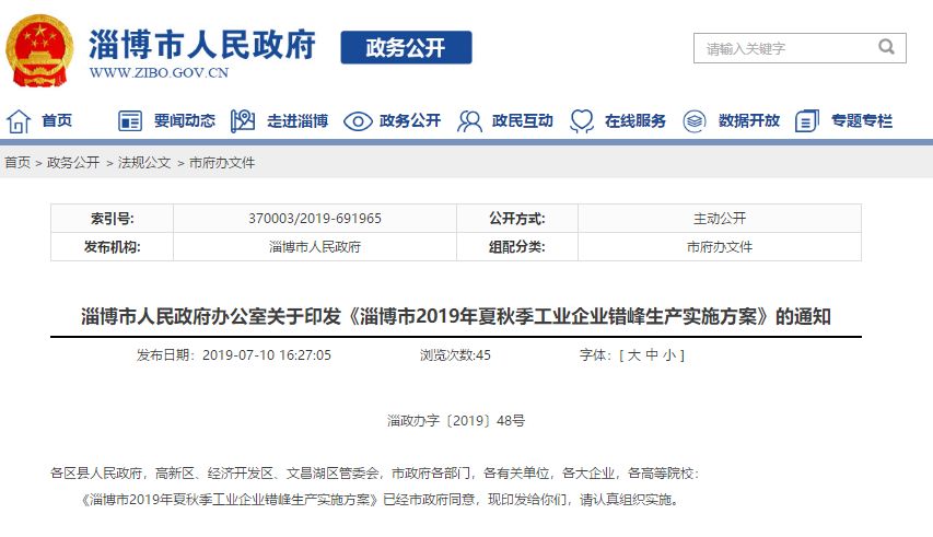 7月10日,淄博市政府办公室印发《淄博市2019年夏秋季工业企业错峰生产实施方案》的通知,宣布从7月份起开展为期3个月的夏秋季工业企业错峰生产,此次错峰生产实施范围为PVC手套、工业炉窑、玻璃(含日用玻璃)、有机化工、制药、石油化工、水泥(不含粉磨站)等,最高限产30%。